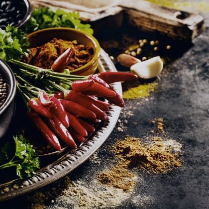 Het boemboe aroma heeft een lichtpittige maar warme kruiden smaak met tonen van knoflook, ui, gember, komijn, koriander en peper.
