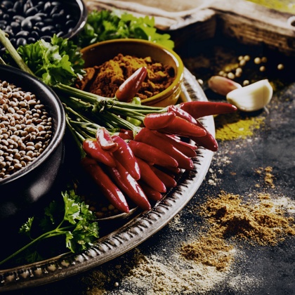 Het boemboe aroma heeft een lichtpittige maar warme kruiden smaak met tonen van knoflook, ui, gember, komijn, koriander en peper.