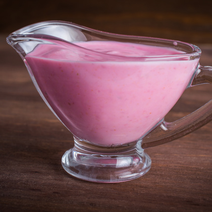We hebben een eigen “Pink Sauce” ontwikkeld op basis vegan mayonaise en room. Het is gearomatiseerd met drakenfruit aroma. De kleur is afkomstig van drakenfruit poeder en voor de ultieme drakenfruit beleving hebben we chiazaad toegevoegd.